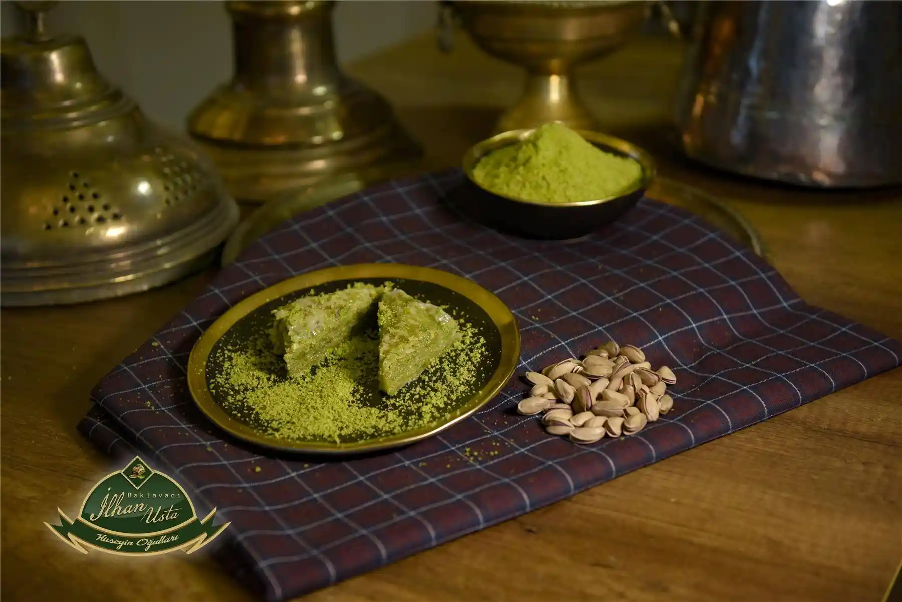 Antep fıstığının en yoğun hali. Kat kat fıstık, az yufka, bol lezzet.